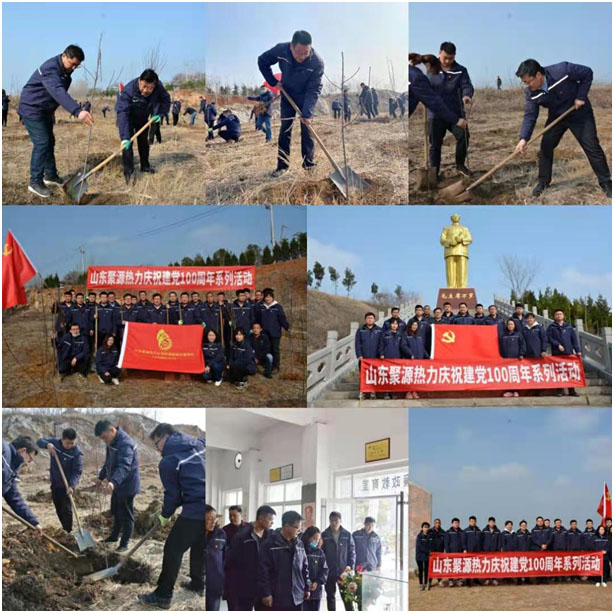 春風(fēng)吐綠、草木初萌,又是一年植樹時。為迎接建黨100周年,深入學(xué)習(xí)貫徹習(xí)近平總書記生態(tài)文明建設(shè)重要戰(zhàn)略思想,牢固樹立和自覺踐行綠色發(fā)展理念,3月12日上午,在山東聚源熱力公司黨支部書記丁潔的帶領(lǐng)下,支部全體黨員一同來到長溝鎮(zhèn)張山黨建文化教育基地,開展了“我為紅色教育基地植樹添綠”活動,以實(shí)際行動踐行生態(tài)文明理念、推動中心工作落實(shí)、保護(hù)傳承紅色基因相結(jié)合的方式,推動黨建和業(yè)務(wù)深度融合。